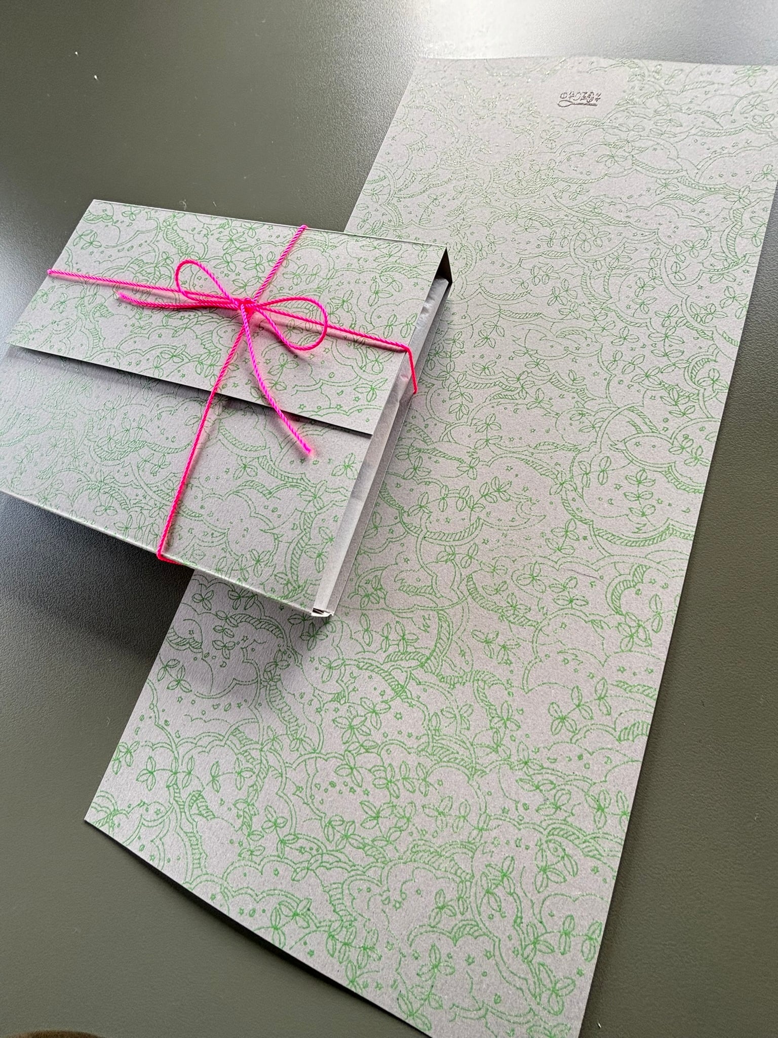 厚紙に緑色、その特殊な印刷は光を浴びてツヤツヤと光り、手で触るとポコポコ。